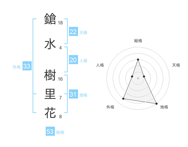 鎗水 樹里花さんの外格は33画の4点!