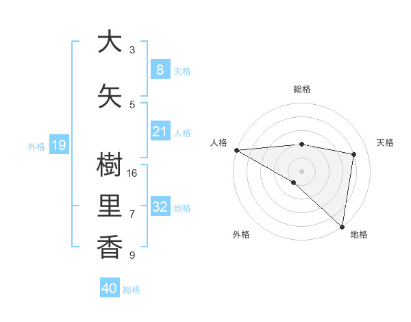 大矢 樹里香さんを姓名の画数から五運を鑑定