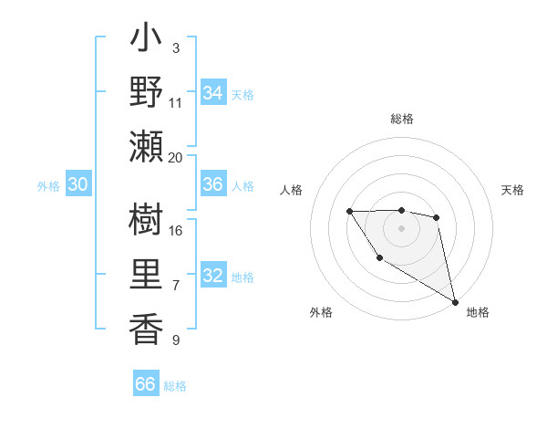 小野瀬 樹里香さんを姓名の画数から五運を鑑定