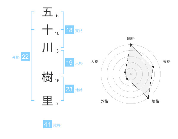 五十川 樹里さんを姓名の画数から五運を鑑定