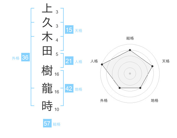 上久木田 樹龍時さんを姓名の画数から五運を鑑定