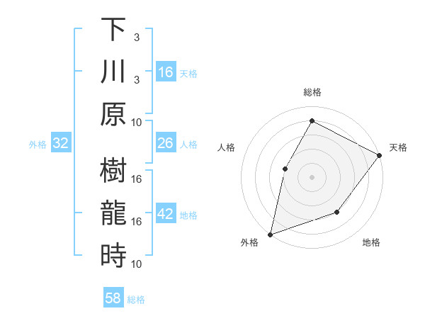下川原 樹龍時さんを姓名の画数から五運を鑑定