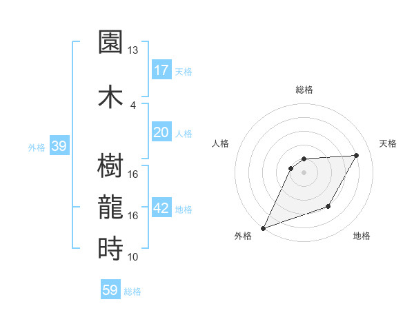 園木 樹龍時さんの天格は17画の4点!