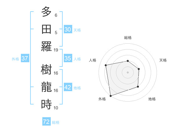 多田羅 樹龍時さんを姓名の画数から五運を鑑定