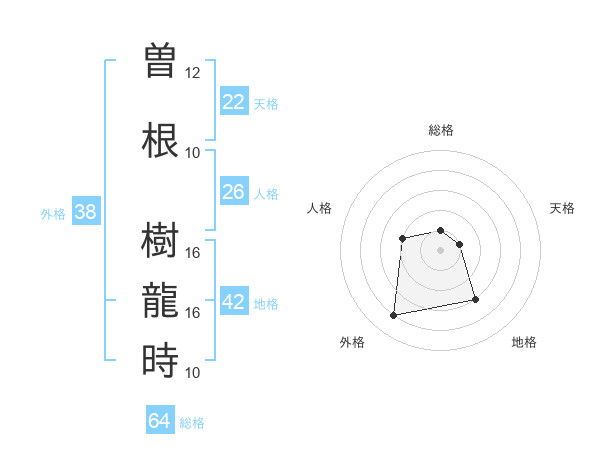曽根 樹龍時さんを姓名の画数から五運を鑑定