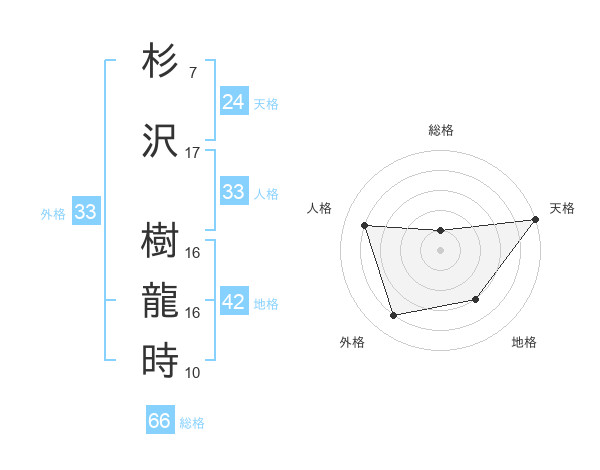 杉沢 樹龍時さんの天格は24画の5点!