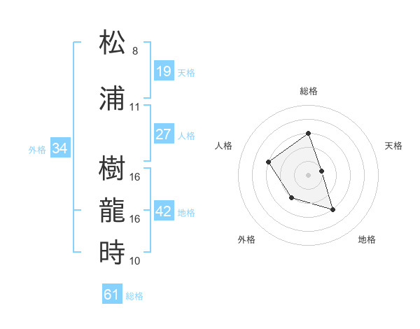 松浦 樹龍時さんを姓名の画数から五運を鑑定