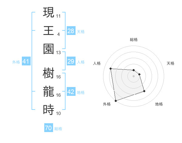 現王園 樹龍時さんを姓名の画数から五運を鑑定
