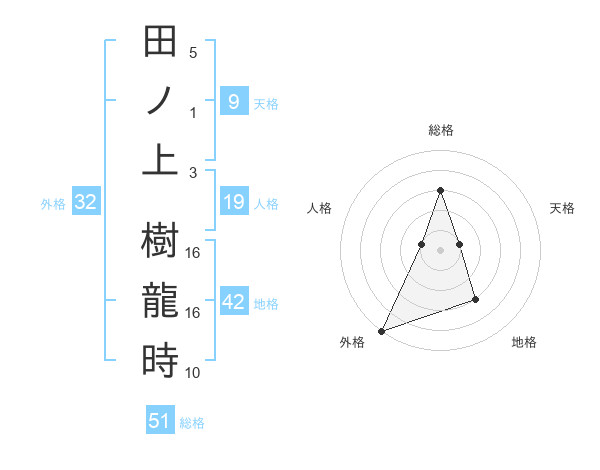 田ノ上 樹龍時さんを姓名の画数から五運を鑑定