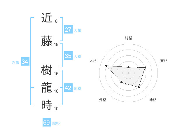 近藤 樹龍時さんの総格は69画の1点