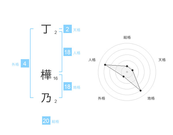 丁 樺乃さんの総格は20画の1点!