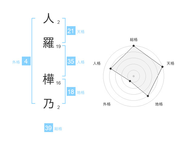 人羅 樺乃さんの総格は39画の5点!