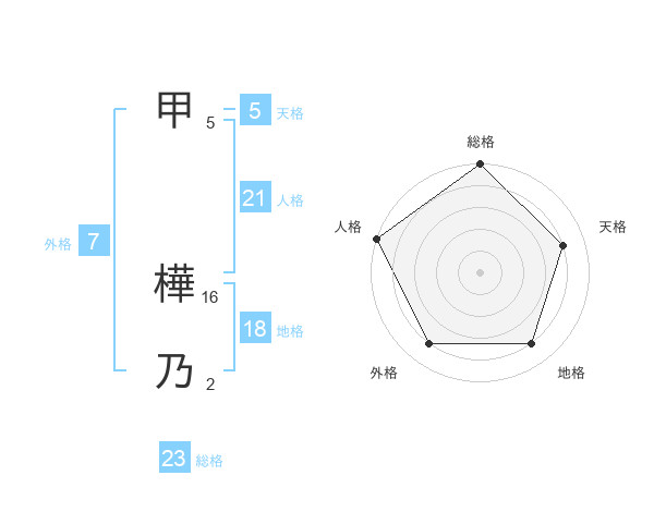 甲 樺乃さんの総格は23画の5点!