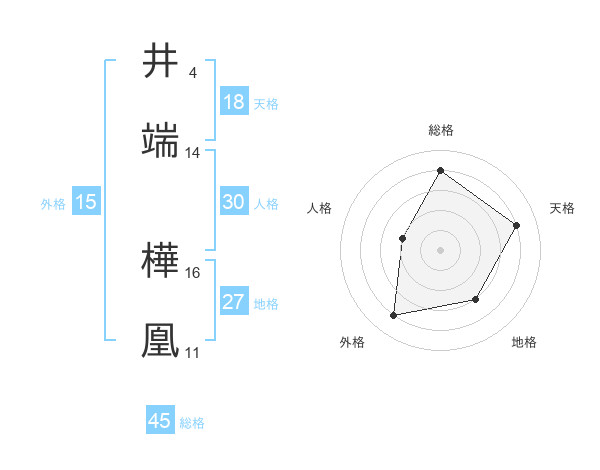 井端 樺凰さんの総格は45画の4点!