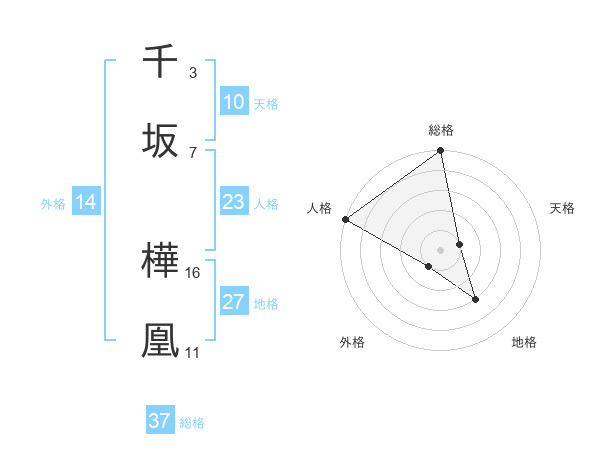 千坂 樺凰さんを姓名の画数から五運を鑑定