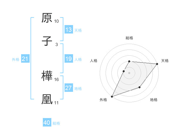 原子 樺凰さんの天格は13画の5点!