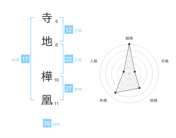 寺地 樺凰さんを姓名の画数から五運を鑑定