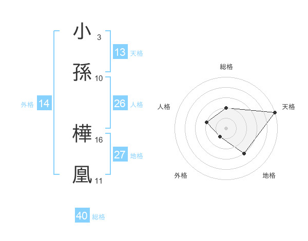 小孫 樺凰さんの天格は13画の5点!