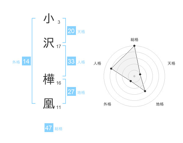 小沢 樺凰さんを姓名の画数から五運を鑑定