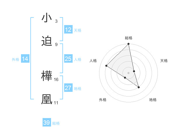 小迫 樺凰さんの総格は39画の5点!