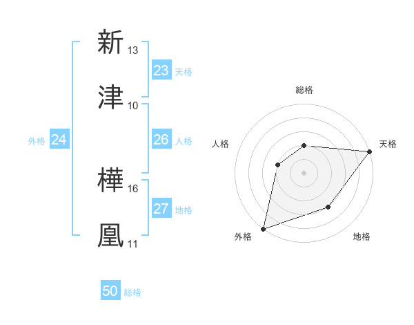 新津 樺凰さんの天格は23画の5点!