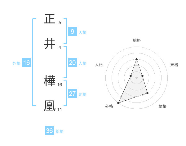 正井 樺凰さんを姓名の画数から五運を鑑定