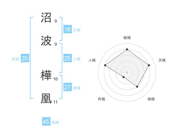 沼波 樺凰さんを姓名の画数から五運を鑑定