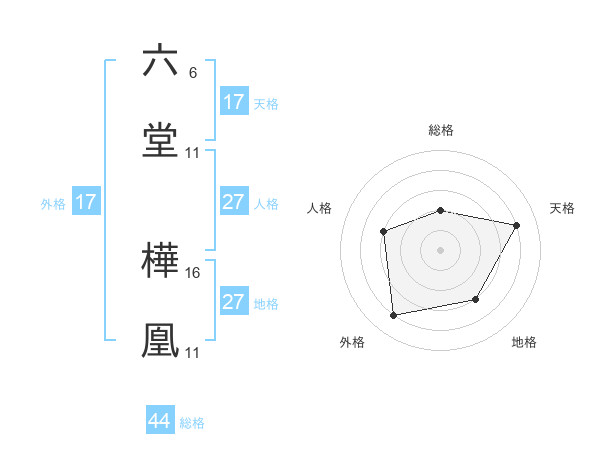 六堂 樺凰さんを姓名の画数から五運を鑑定