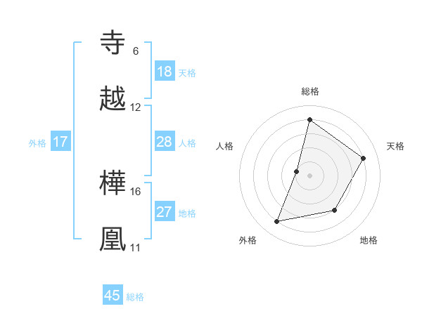 寺越 樺凰さんの総格は45画の4点!
