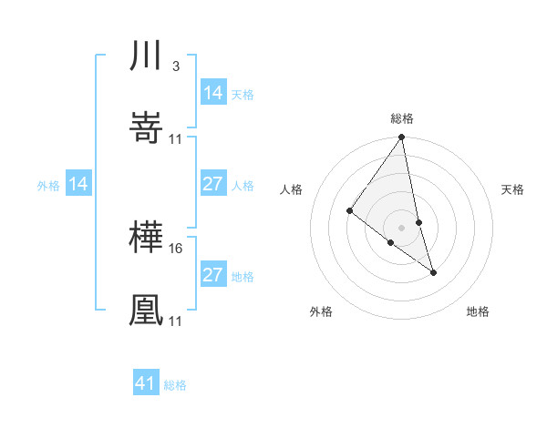 川嵜 樺凰さんの総格は41画の5点!