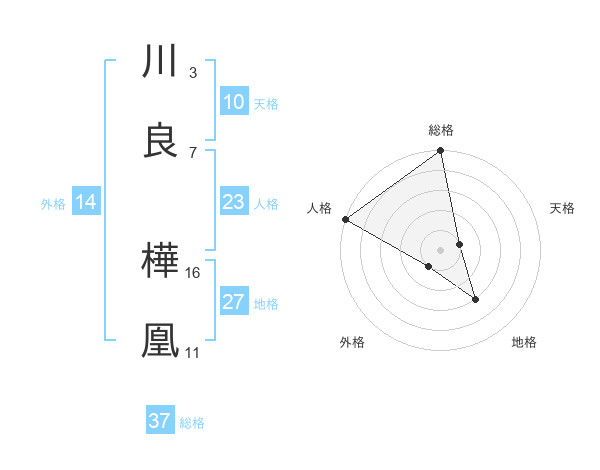 川良 樺凰さんの総格は37画の5点!