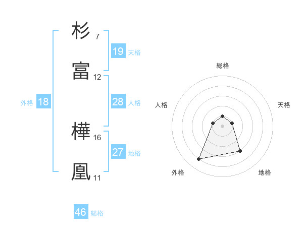 杉富 樺凰さんの総格は46画の1点!