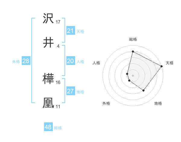 沢井 樺凰さんを姓名の画数から五運を鑑定