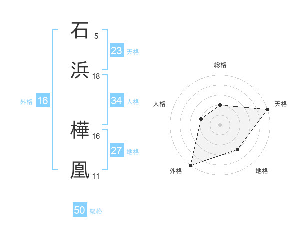 石浜 樺凰さんの総格は50画の2点!
