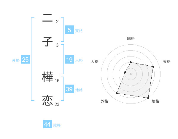 二子 樺恋さんの総格は44画の2点!