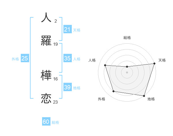 人羅 樺恋さんの総格は60画の1点!