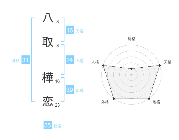 八取 樺恋さんを姓名の画数から五運を鑑定