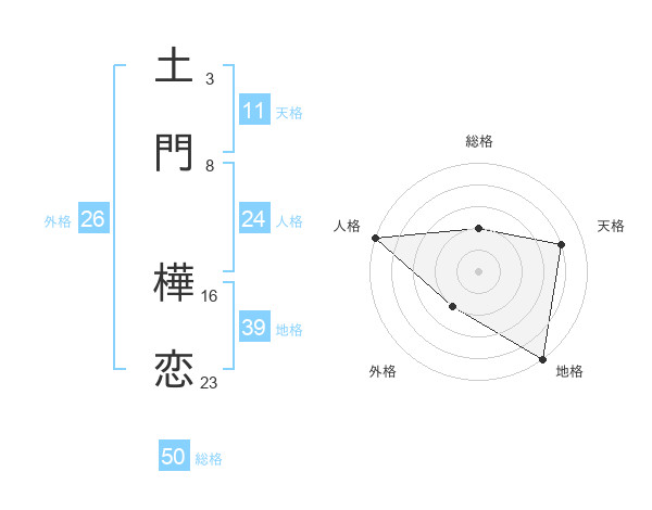 土門 樺恋さんの総格は50画の2点!