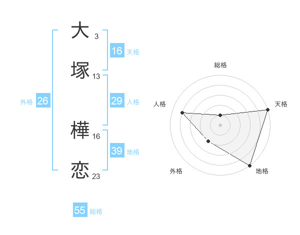 大塚 樺恋さんの天格は16画の5点!