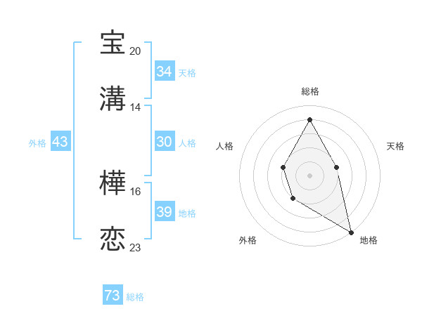 宝溝 樺恋さんを姓名の画数から五運を鑑定