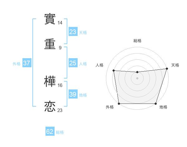 實重 樺恋さんを姓名の画数から五運を鑑定