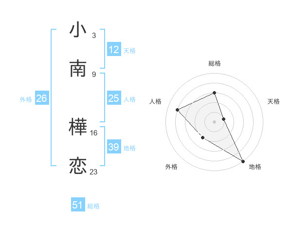 小南 樺恋さんを姓名の画数から五運を鑑定