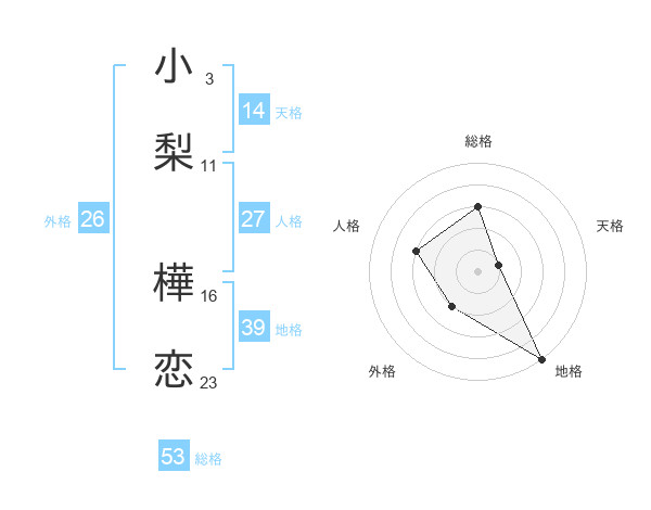 小梨 樺恋さんの総格は53画の3点!