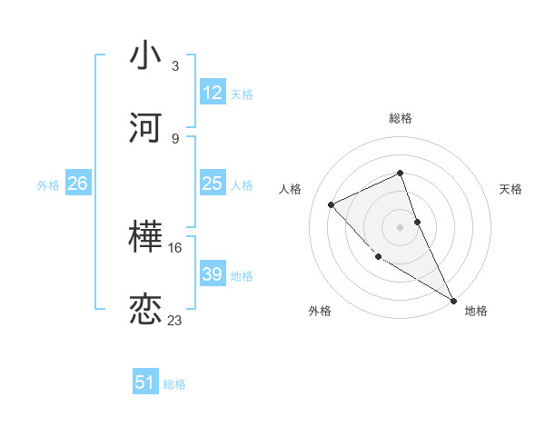 小河 樺恋さんを姓名の画数から五運を鑑定