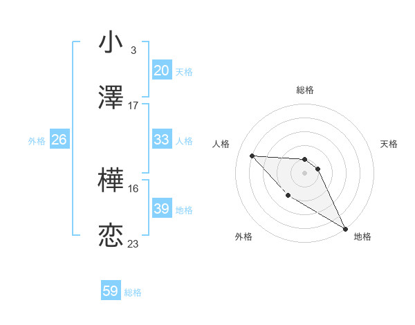小澤 樺恋さんの総格は59画の1点!