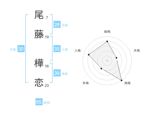 尾藤 樺恋さんの総格は65画の4点!