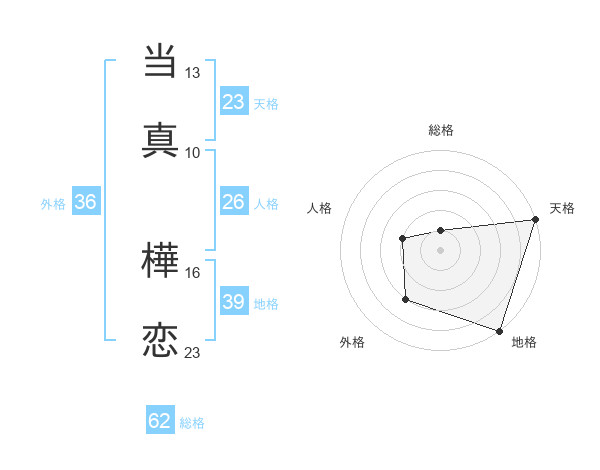 当真 樺恋さんの地格は39画の5点!