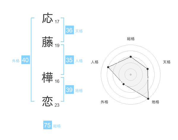 応藤 樺恋さんの総格は75画の3点!