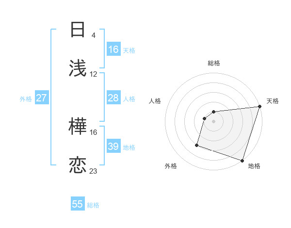 日浅 樺恋さんの天格は16画の5点!