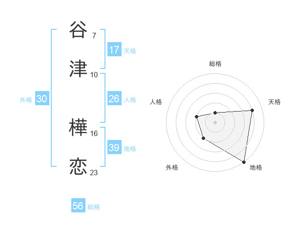 谷津 樺恋さんの天格は17画の4点!